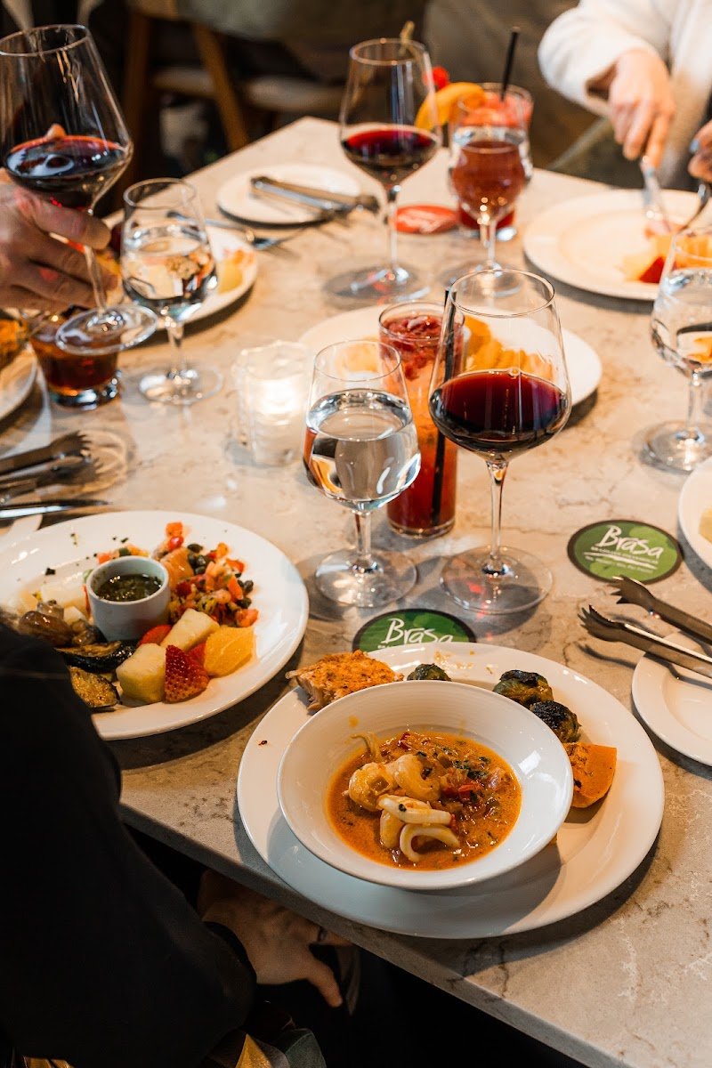 Brasa Brazilian Steakhouse in Niagara Falls offers an all-you-can-eat Brazilian rodizio experience. The restaurant features a vibrant atmosphere with live music on select nights, making it a good choice for celebrations or group dining. Guests can enjoy a variety of skewered meats served directly at the table, alongside a colorful salad bar. The wine selection is extensive, complementing the grilled meats well. Vegetarian and vegan options are available, and the restaurant accommodates gluten-free diets. Located at 6361 Fallsview Blvd, it’s advisable to make reservations, especially on weekends. The steakhouse is wheelchair accessible and has a medium noise level, providing a lively yet comfortable dining experience.