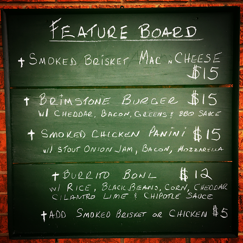 Brimstone Brewing Company in Ridgeway offers a unique brewery experience with a casual atmosphere. The space features a chapel-like vibe, making it a comfortable spot for friends to gather. The menu includes a variety of casual bites alongside a rotating selection of beers that cater to different tastes. Outdoor seating is available for those who prefer to enjoy their drinks in the fresh air. Live performances add a lively touch to the environment, making it suitable for a relaxed evening out. The brewery is wheelchair accessible, and reservations can be made in advance. It's a great place for both locals and visitors looking to unwind.