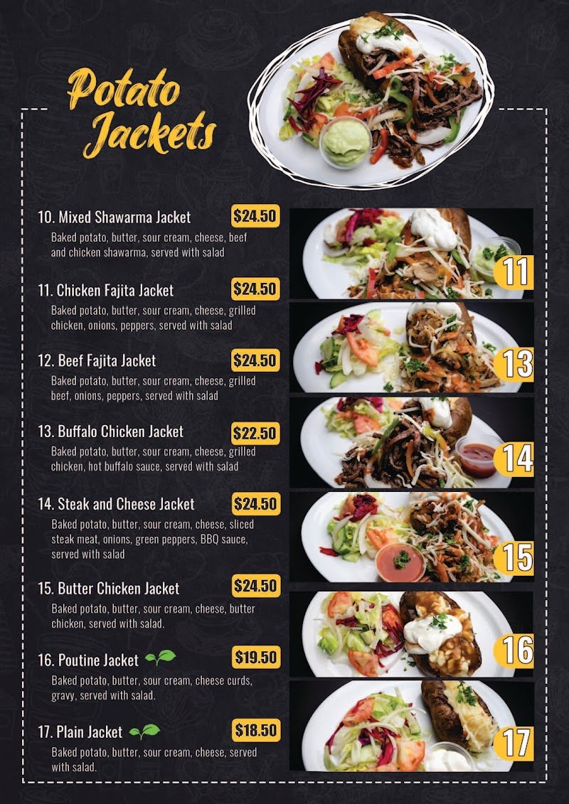 Potato Jackets in Niagara Falls offers a straightforward menu focused on baked potatoes and chicken shawarma wraps. The casual atmosphere makes it a good spot for a quick meal, whether you're dining in or grabbing something to go. Portions are generous, and the prices are reasonable, making it accessible for a variety of budgets. The restaurant is halal-friendly and provides options for those looking for vegetarian dishes. It's a convenient choice for late-night cravings, open until 11:30 PM on weekends. The location is wheelchair accessible, and there's free parking available nearby.